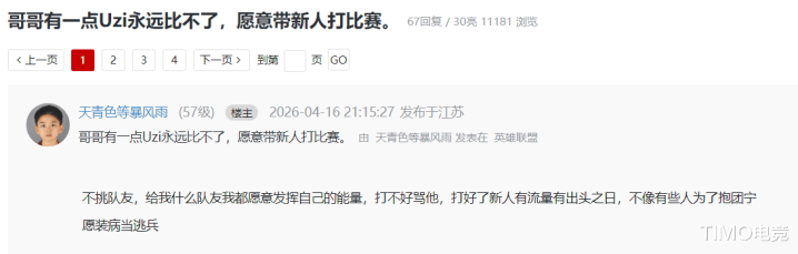 有网友在虎扑直戳要害:想想物资从s3开始喷走了多少辅助,后来名气越来越大对队伍配置要求也越来越高;Uzi短短职业生涯踢了10多个,Uzi老能跑了。